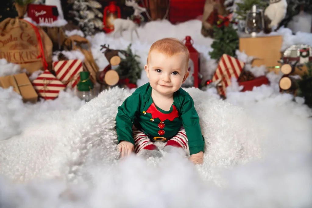 One of the keys to a successful photo session with babies and toddlers is making sure they’re comfortable in what they’re wearing. Avoid outfits that are too tight, itchy, or complicated to put on. When selecting Christmas outfits, opt for soft fabrics and breathable materials, especially for babies with sensitive skin.